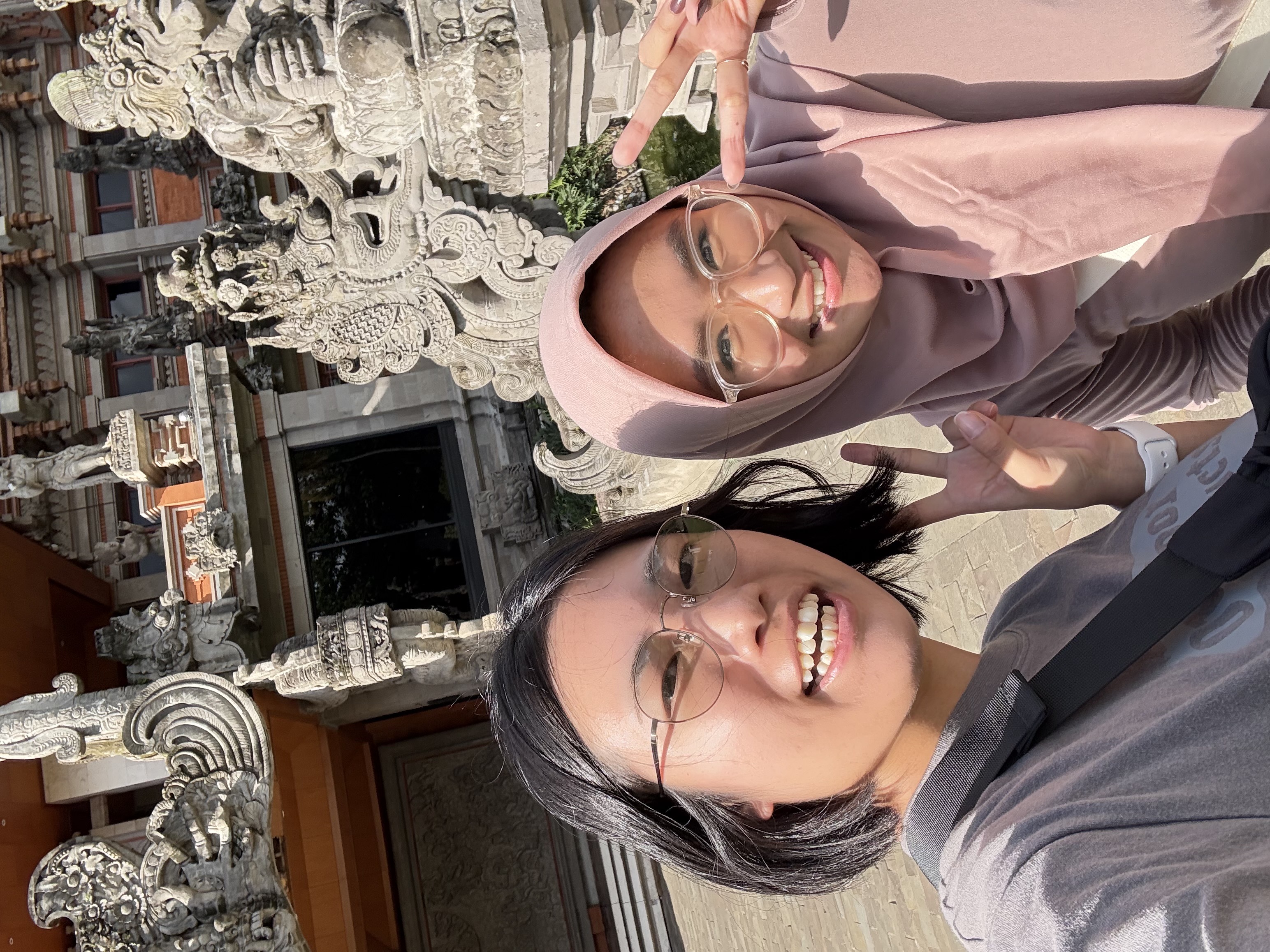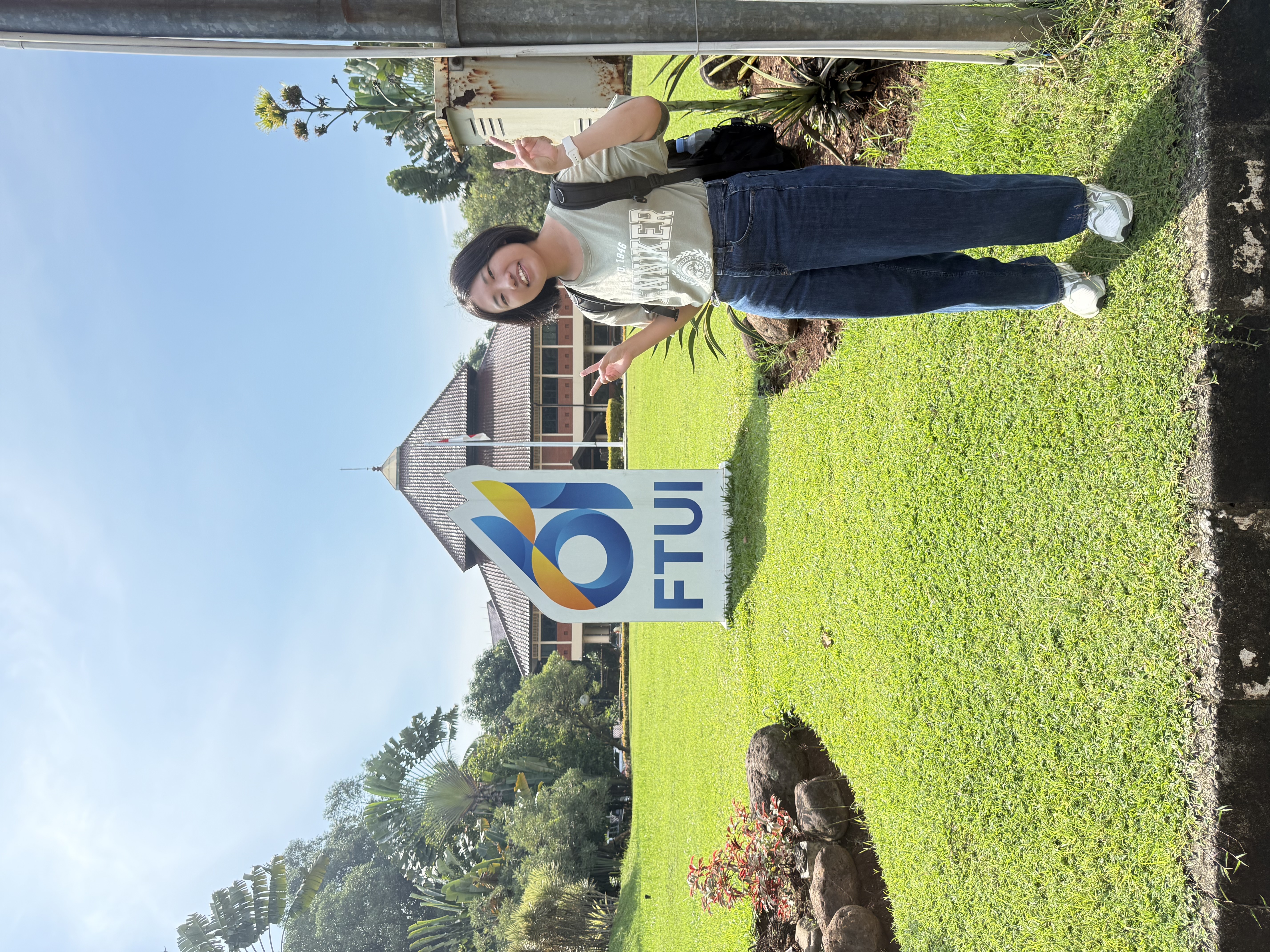 ホーム > フォトアルバム > 海外渡航報告 > IJJSS2025 IJJSS 2025 出張者 M2 服部拓馬, M1 鈴木佑奈 出張期間 2025/10/25 Sat. ~ 2025/11/7 Fri. 出張先 ジョグジャカルタ, インドネシア 2日目 報告 前日にジャカルタに到着し,この日はジョグジャカルタに移動した.ジャカルタとジョグジャカルタは日本でいうと,東京と大阪みたいな距離感だと思う. 夕食はインドネシアで最も有名なファミレスであるSOLARIAで食べた. 2日目 写真 ジョグジャカルタ 宿泊ホテル 夕食(Yi fu mie) 3日目 報告 本学会QiR2025が開催された.今回の学会は様々なセッションから成り立っており,私たちはIJJSSに参加した.IJJSSは日本とインドネシアの合同学会であり, 開催地はインドネシアと日本で交互に行われているみたいだ.今回の会場はTentrem Hotelで,天皇陛下やオバマ大統領も宿泊したなんともすごいホテル... スケジュールから1時間遅れて,プログラムが開始した.この時間に縛られない形が国民性があふれているなと感じた.それにしても1時間とは,,, 国際会議であるためもちろん英語で発表,質疑応答が行われる.英語での質疑応答は難しいものだと改めて感じるとともに,唯一無二の経験だと感じた. 3日目 写真 発表 服部 発表 鈴木 学会会場 天皇陛下 4日目 報告 インドネシアにも日本料理は存在しており,おなじみのキャラクター達がいた.インドネシアのラーメンもまぁまぁおいしかった. 4日目 写真 夕食 ラーメン 5日目 報告 午前中にボロブドゥール遺跡,午後にプランバナン遺跡を訪れた.ボロブドゥール遺跡は世界最大規模の仏教遺跡で,プランバナン遺跡はインドネシア最大のヒンドゥー教寺院で, 両者とも世界遺産に登録されている. 5日目 写真 ボロブドゥール遺跡 全体 ボロブドゥール遺跡 ストゥーパ プランバナン遺跡 6日目 報告 午前中は学会に参この日はジョグジャカルタからジャカルタに移動して,インドネシア大学近くのホテルに宿泊した. この際,先生が間違えて高級タクシーを頼んでしまい,空港からホテルに着くまでの約1時間,アルファードに乗車し快適な移動であった. 夜には,インドネシアからの留学生であるFitriさんの家族が迎えに来てくれ,一緒にインドネシア料理を食べた.特にサテ(インドネシアのやきとりのようなもの)がおいしかった. 6日目 写真 高級タクシーの様子 ジャカルタ 宿泊ホテル 7日目 報告 インドネシア大学に向かい,午後の授業に参加した.授業では,私たちの行っている研究についてインドネシア大学の2年生に説明した. インドネシア大学の学生は,かなり流暢な英語で質問をしてくれた.日本の文化についても知ってもらい,楽しく授業を終えることができた. 7日目 写真 発表 服部 発表 鈴木 集合写真 8日目 報告 8日目は土曜日.休日らしくジャカルタ市内の観光を行った.午前中に東南アジア最大規模を誇る「イスティクラク大モスク」,モスク近くにある「ジャカルタ大聖堂」,インドネシアの独立記念塔である「モナス」を訪れた. 今回訪れたモスクと大聖堂のように,イスラム教とキリスト教の建物が隣り合っているのは世界的に見ても珍しいそう.モスク内は昼寝をしている人がいたり,お祈りのために集まっている人がいたり,観光客がいたりとなかなかユニークな場所であった. お昼ごろには,グランドインドネシアと呼ばれる大型ショッピングモールに行き,昼食を食べた.服部さんと先生はこの日の深夜便で日本に帰国するため,昼食を食べた後には早めにホテルに戻って帰り支度をしていた. 8日目 写真 イスティクラク大モスク ジャカルタ大聖堂 モナス 昼食(ペッパーランチ) 9日目 報告 今日から一週間は,鈴木のみがインドネシア大学に留学した.午後からボドゲカフェに行き,インドネシア大学の学生と遊んだ. インドネシア語で教えてもらったボードゲームのルールを,学生さんが英語に翻訳してくれ,なんとかゲームを進めることができた. 日本名で「あやつり人形」と呼ばれるボードゲームや,「キングオブトーキョー」というボードゲームを楽しんだ. 夜にはショッピングモールに行き,みんなとご飯を食べた. 9日目 写真 ボドゲカフェ 集合写真 夕食(Sop Buntut) 10日目 報告 今日この日から4日間,インドネシア大学の授業に参加した.初日はSherlyさんという学生さんにインドネシア大学構内を案内してもらった.主に図書館,工学部(電気電子学科)の建物,学食を紹介してくれた. 図書館はかなり広く,中には日本語の本もあった.大学内はかなり広いため,構内移動用のバイクに乗って移動した. 午後の授業が始まるまでの時間は,Sherlyさんと好きなことやインドネシアの宗教について,将来についてなど色々なことを話した. 特に,インドネシア特有のことについては初めて聞くことも多く,かなり勉強になった. 10日目 写真 移動用バイク 図書館 工学部棟前 夕食(清六屋) 11日目 報告 インドネシア留学の2日目は,Jerryさんという学生さんに連れられて,研究室や研究内容について教えてもらった. 放課後は,インドネシア大学で学部対抗の応援合戦イベントに参加した(FTUI parade).とても熱
